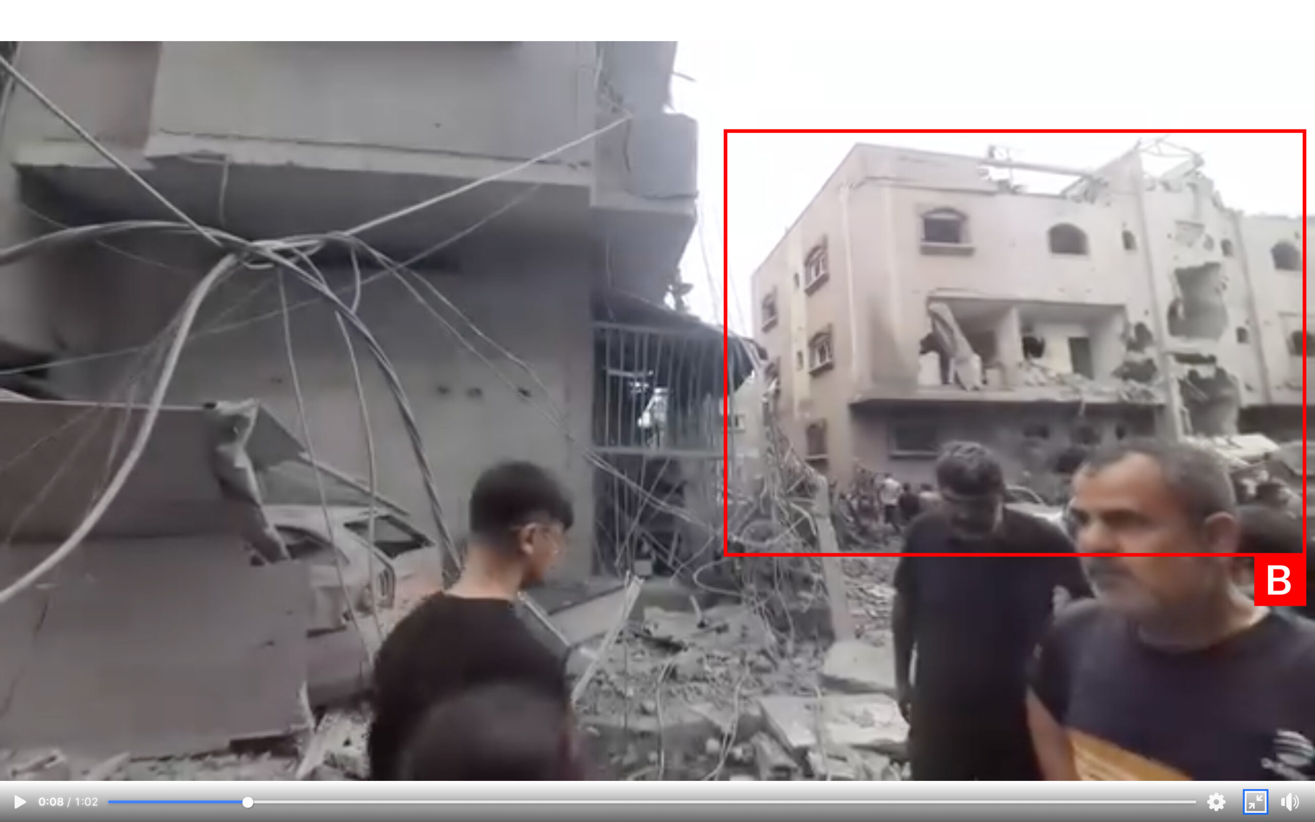 Reports of the incident mention a residential building being struck in the vicinity of Mohamed Yousef An-Najjar School (مدرسة محمد يوسف النجال) in the Brazil neighbourhood (حي البرازيل) in Rafah city (رفح). Analysing audio-visual material from sources, we have narrowed the location down to the following exact coordinates: 31.270713, 34.254047.